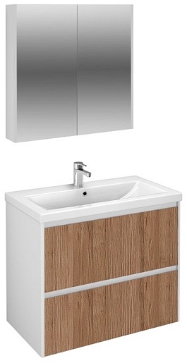 Тумба под раковину подвесная Klaufs 90 белая/дерево, 2 ящика