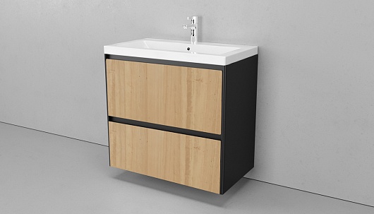 Тумба под раковину подвесная Klaufs 90 черная/дерево, 2 ящика