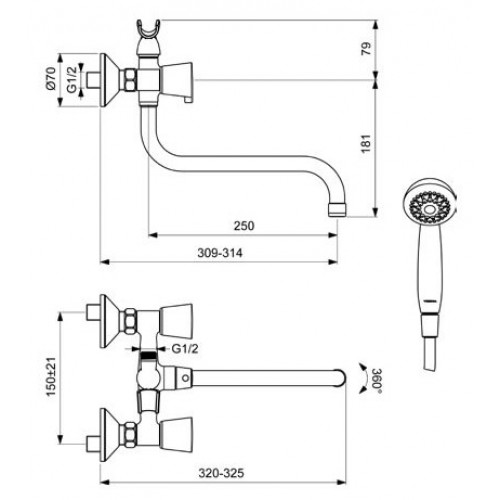 - 1-функциональная душевая лейка