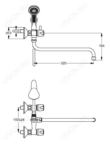 - ручной переключатель ванна/душ