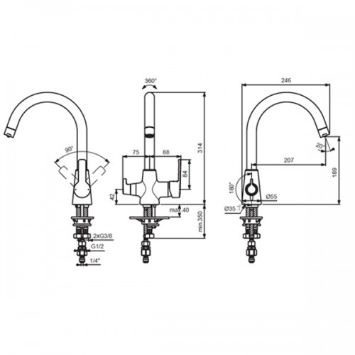- аэратор Perlator с 2-мя выходами: центральный – для фильтрованной воды, по окружности – для нефильтрованной воды