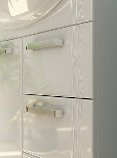 - тумба под раковину: распашная дверца и 3 выдвижных ящика с механизмом плавного закрывания, вкладная полка, 4 металлических ручки (хром), регулируемые ножки