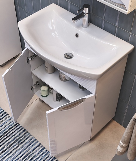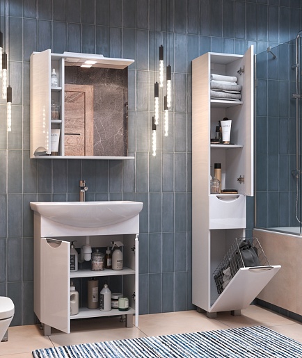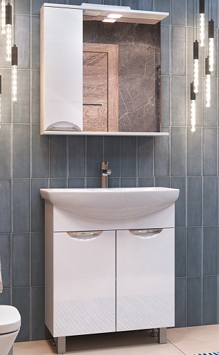 В комплекте: тумба, раковина, сифон, зеркальный шкаф, ножка (4 шт.).