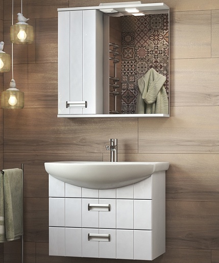 В комплекте поставки: тумба, раковина, зеркальный шкаф, крепеж.
