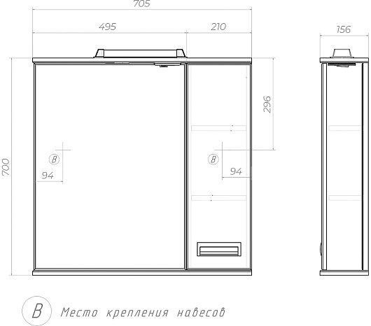 - Размеры (ШхГхВ): 705х156х700 мм.