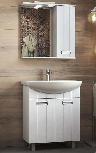 В комплекте: тумба, раковина, зеркальный шкаф, ножки (4 шт.).