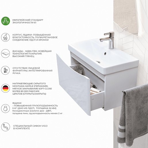 Тумба с раковиной Vigo Glem 700-0-1 - арт. tp.GLE.9595.70.1Y / 9595-70.