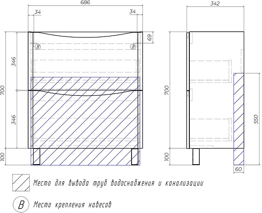 Тумба с раковиной Vigo Glem 700-0-2 - арт. tn.GLE.9595.70.2Y / 9595-70.