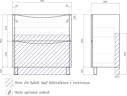 - Раковина с переливом.