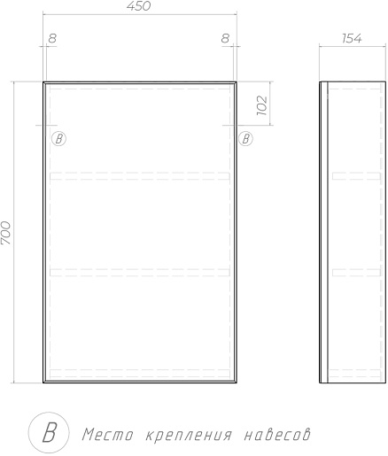 - Размеры (ШхГхВ): 450х154х700 мм.