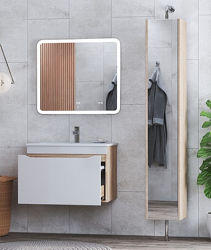 В комплекте: тумба, раковина, зеркало.