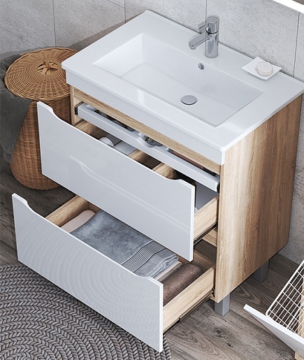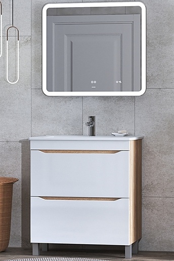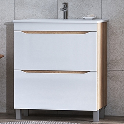 Тумба под раковину Grani 600-0-2 белая/дуб сонома