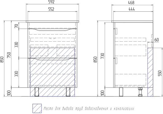 Тумба с раковиной Vigo Grani 600-0-2 - арт. tn.GRI.ELI.60.2Y дуб сонома / 1WH501606 (4640021623961).