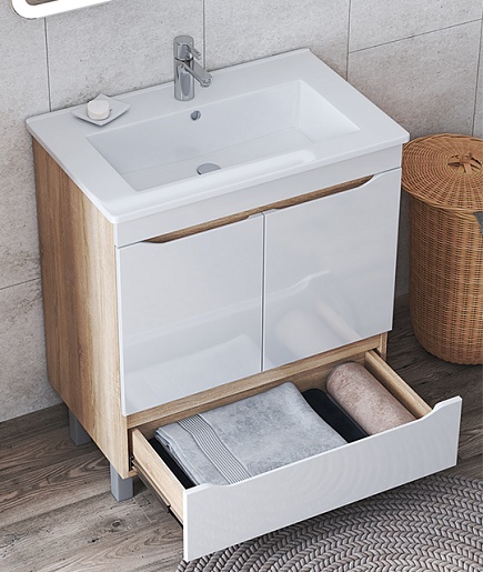 Тумба под раковину Grani 600-2-1 дуб сонома/белая