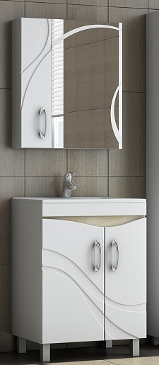 В комплекте: тумба, раковина, зеркальный шкаф, ножки.