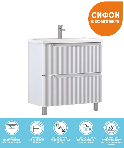 В комплекте: тумба, раковина, зеркало, сифон, ножка (2 шт.).