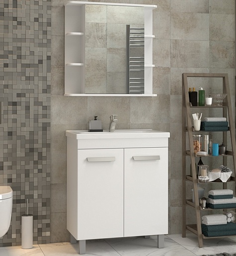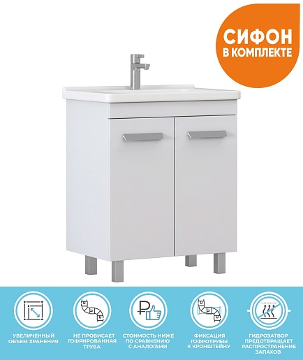 В комплекте: тумба, раковина, зеркальный шкаф, сифон, ножка (4 шт.).