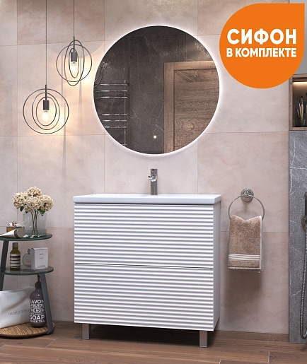 В комплекте: тумба, раковина, зеркало, сифон, ножка (2 шт.), крепеж.