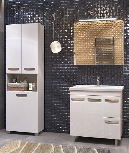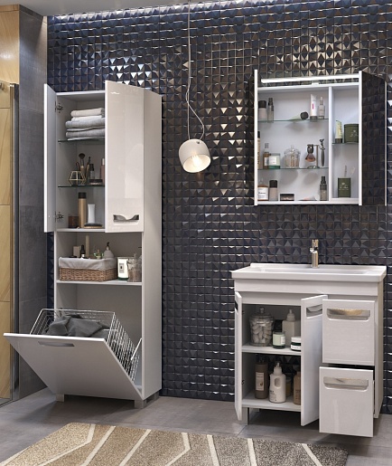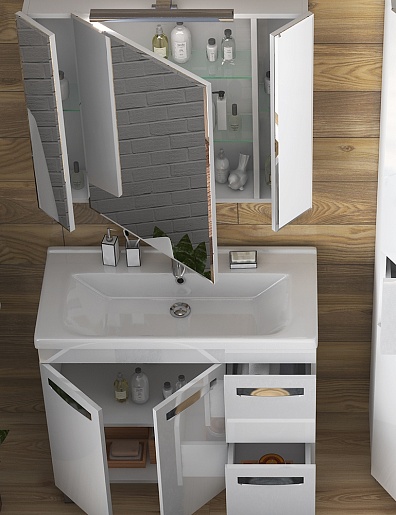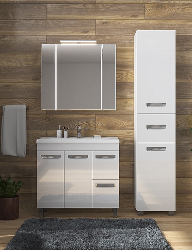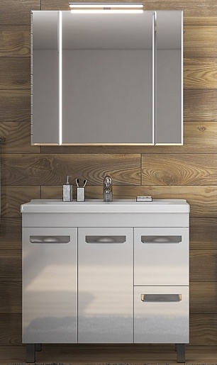 В комплекте: тумба, раковина, зеркальный шкаф, ножка (4 шт.).