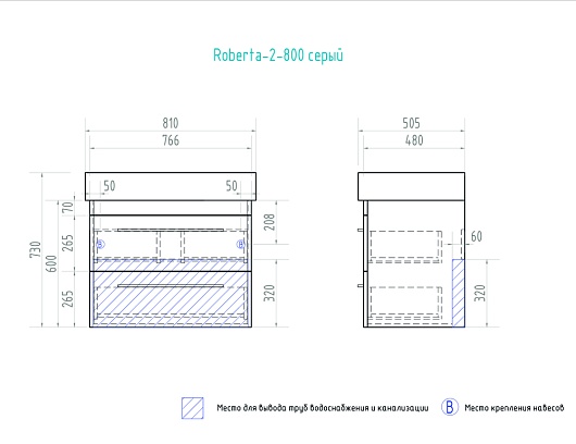 Тумба под раковину Roberta 2-800 белый