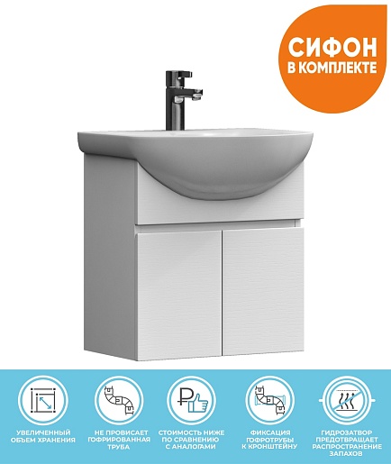 Подвесная тумба с раковиной Vigo Wing 500-2-0 - арт. tp.WIN.BAL.50.2D белый / 1WH501701 (4640021624456).