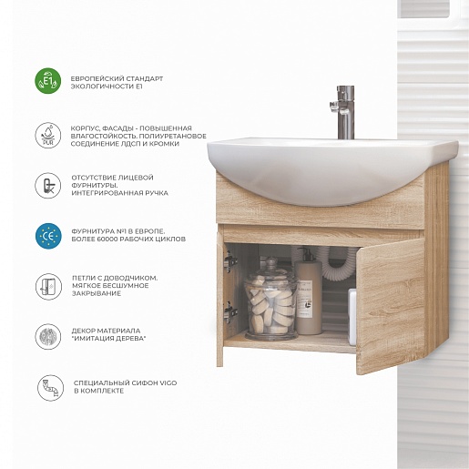 Подвесная тумба с раковиной Vigo Wing 600-2-0 - арт. tp.WIN.BAL.60.2D дуб сонома / 1.WH11.0.246.