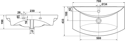 Мебельная накладная раковина Vigo Керамин Палермо 70 - арт. 4810531101741.