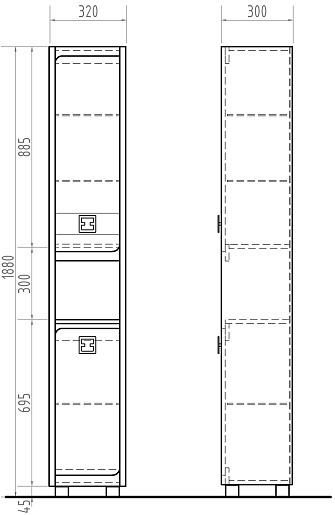 - Система хранения: 2 распашные дверки, 1 открытая ниша, вкладные внутренние полки