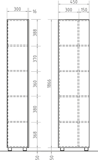 - Система хранения: 1 дверца, 4 открытые полки.