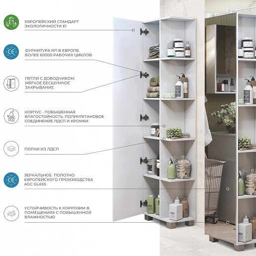 Vigo Шкаф пенал Urban 450 белый/зеркальный