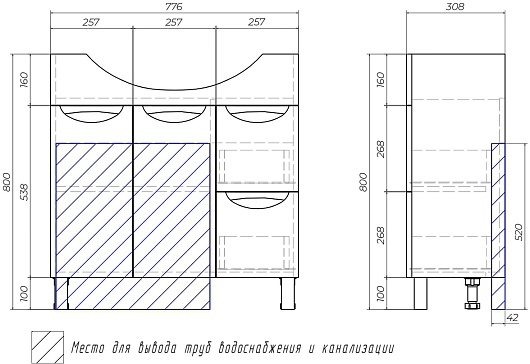 Комплектация: тумба под раковину, сифон, ножки (4 шт.).
