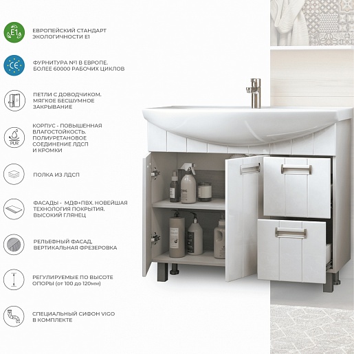 Тумба под раковину Vigo Diana 80 - арт. tn.DIA.BAL.80.2D.2Y.