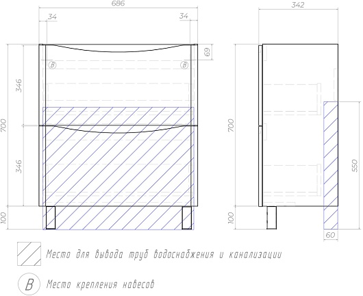 В комплекте: тумба, сифон, ножка (2 шт.).
