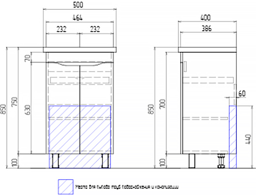 Тумба под раковину Vigo Grani 500-2-0 - арт. tn.GRI.FOS.50.2D.