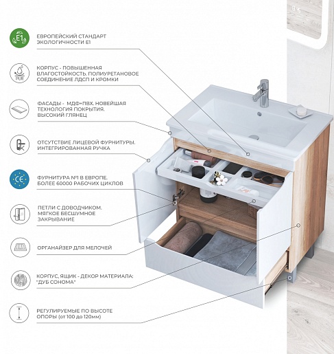 Тумба под раковину Vigo Grani 750-2-1 - арт. Tn.GRI.OSK.75.2D.1Y дуб сонома.
