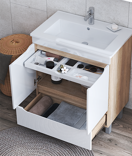 Vigo Тумба под раковину Grani 750-2-1 белая/дуб сонома