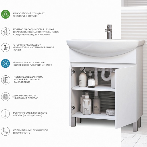 В комплекте: тумба, сифон, ножка (4 шт.).