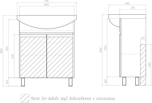Тумба под раковину Vigo Wing 700-2-0 - арт. tn.WIN.BAL.70.2D белый.