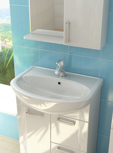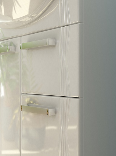 - тумба под раковину: 2 распашные дверцы и выдвижной ящик с механизмом плавного закрывания, вкладная полка, 3 металлических ручки (хром), регулируемые ножки