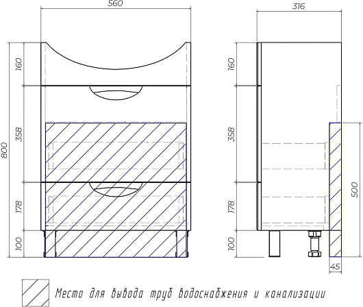 Тумба с раковиной Vigo Callao 60 - арт. tn.CAL.BAL.60.2Y / 1WH110246*.