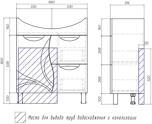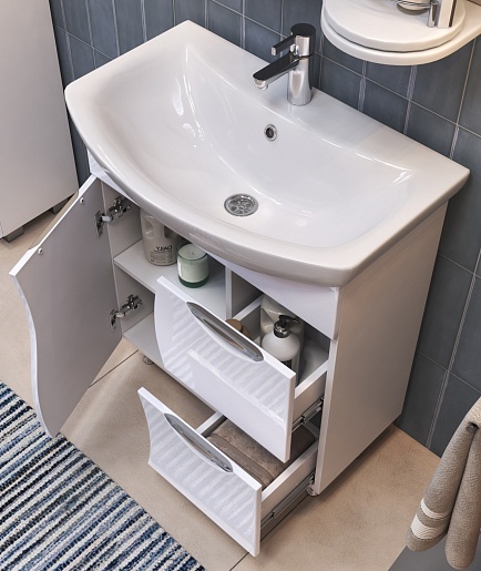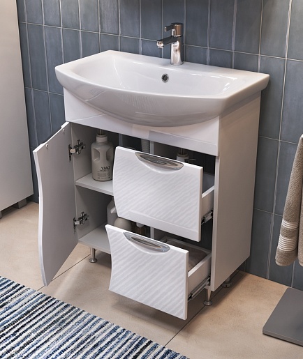Комплектация: тумба под раковину, раковина, сифон, ножки (4 шт.).