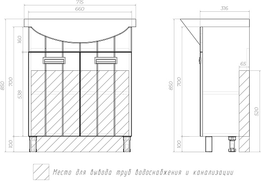 Тумба с раковиной Vigo Diana 70 - арт. tn.DIA.BAL.70.2D / 1WH207776*.