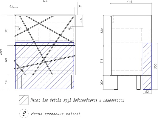 В комплекте: тумба, раковина, ножка (2 шт.), крепеж.
