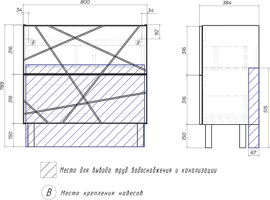 В комплекте: тумба, раковина, ножка (2 шт.), крепеж.