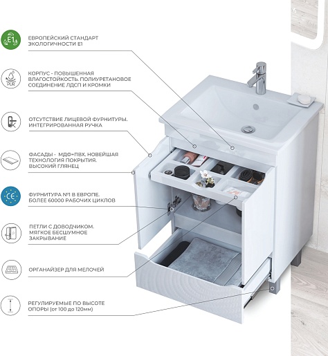 В комплекте: тумба, раковина, ножка (4 шт.).