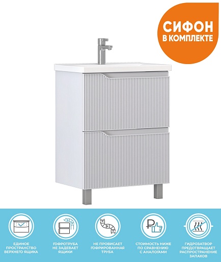 В комплекте: тумба, раковина, сифон, ножка (2 шт.).