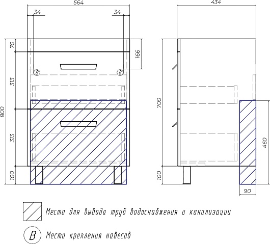 В комплекте: тумба, раковина, сифон, ножка (4 шт.).