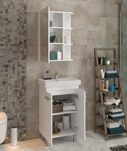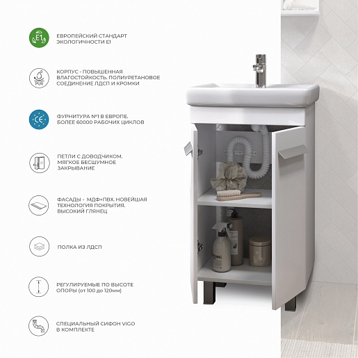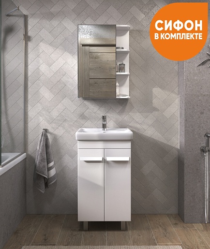 В комплекте: тумба, раковина, сифон, ножка (4 шт.).