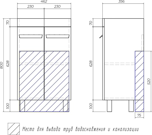 Тумба с раковиной Vigo Nova 500 - арт. tn.NOV.TIG.50.2D / 1WH302128.