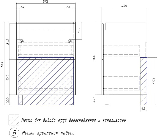 В комплекте: тумба, раковина, сифон, ножка (2 шт.), крепеж.